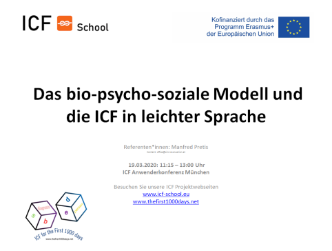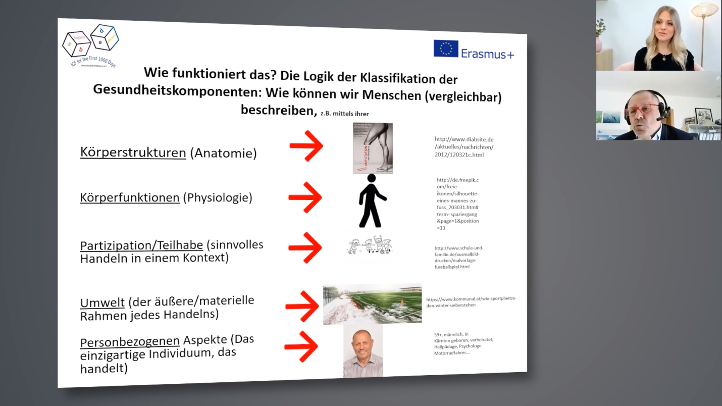 Our partner prof. dr. Manfred Pretis gave an online video-training on ICF using the Modules created as O1 (http://thefirst1000days.net/First1000days.html) of our project “A Common Language for the First 1000 days” in a collaboration with Educational Institute for Social Affairs and Health (BSG Bildungsinstitut für Soziales und Gesundheit) from Germany.